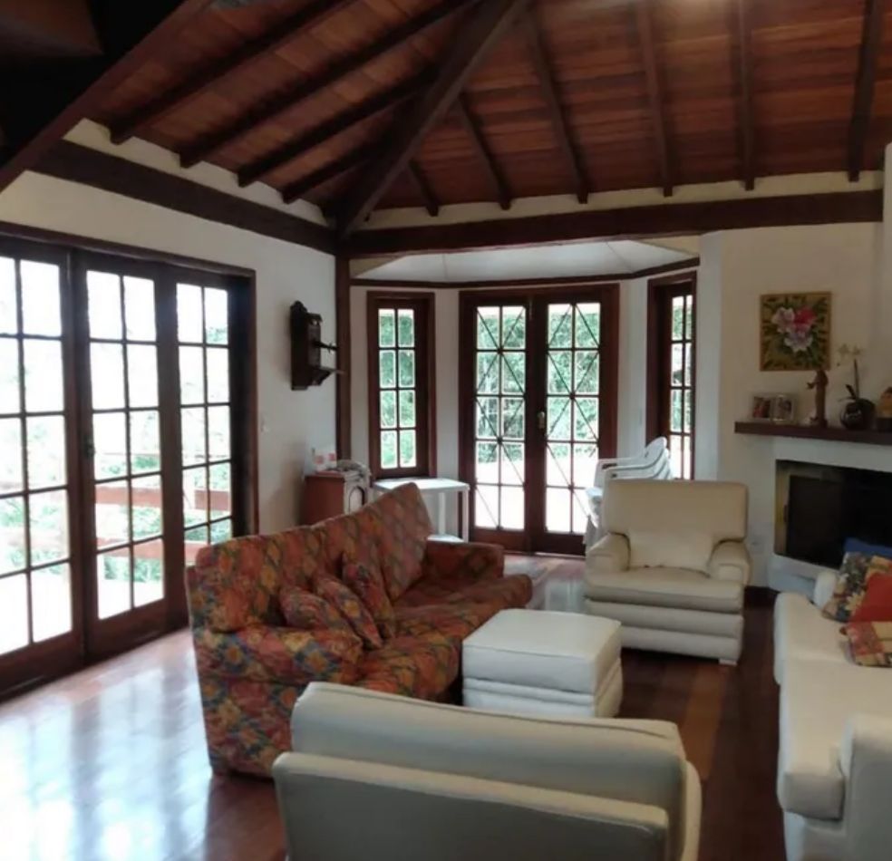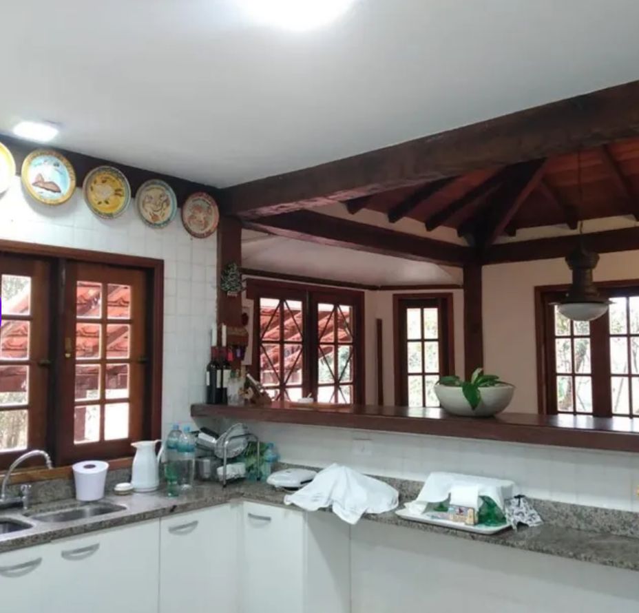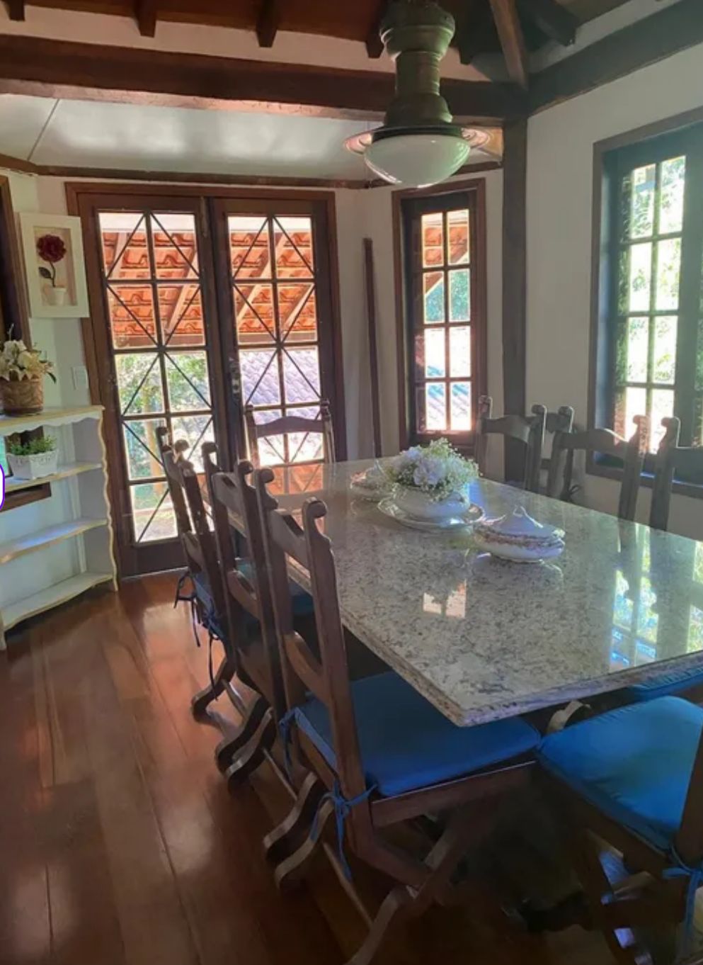 1º andar: Ampla sala com lareira em três ambientes, quarto, banheiro, cozinha completa e área de serviço.