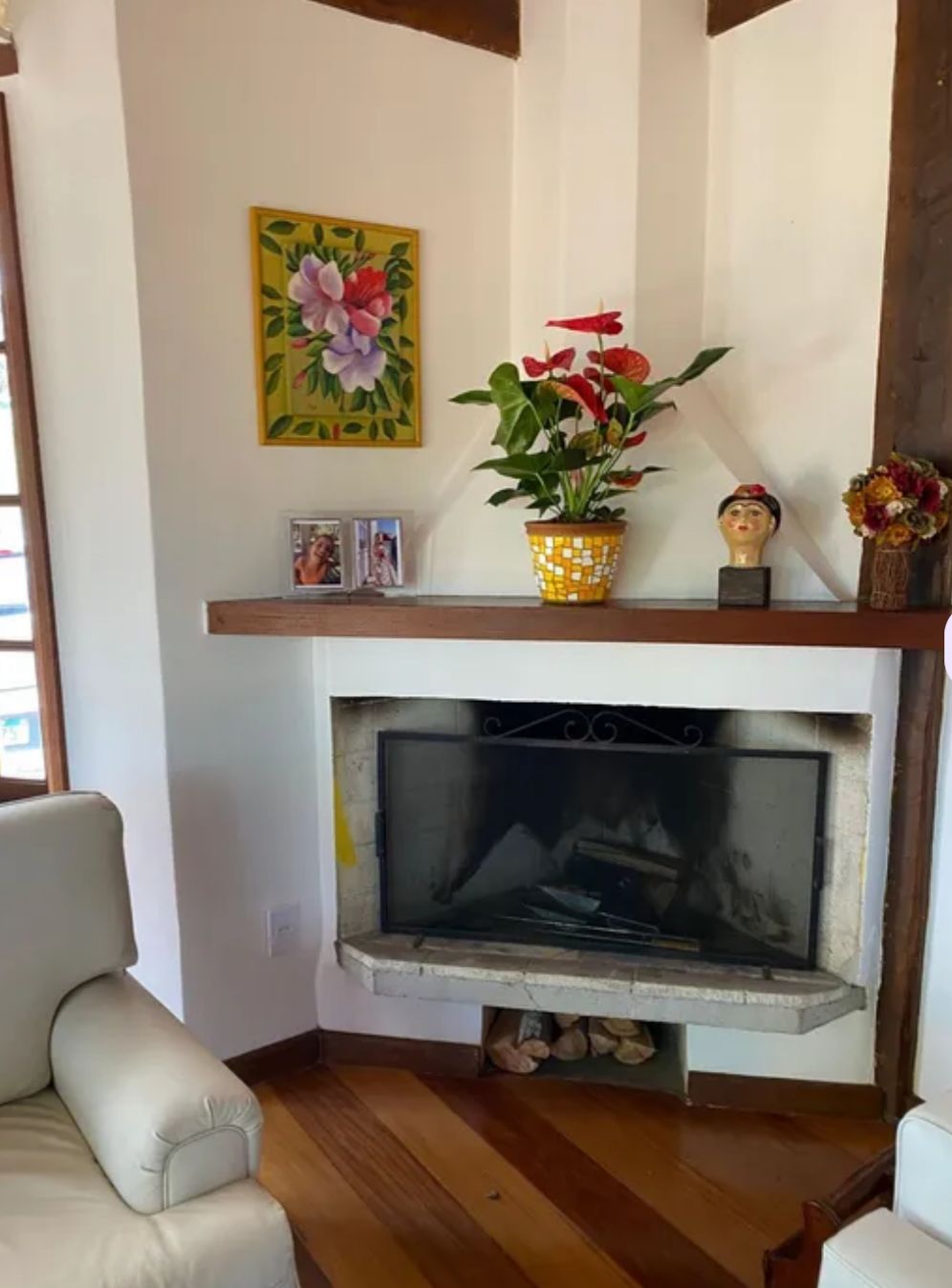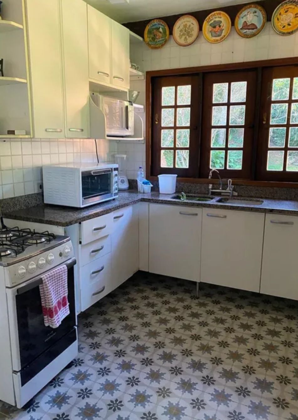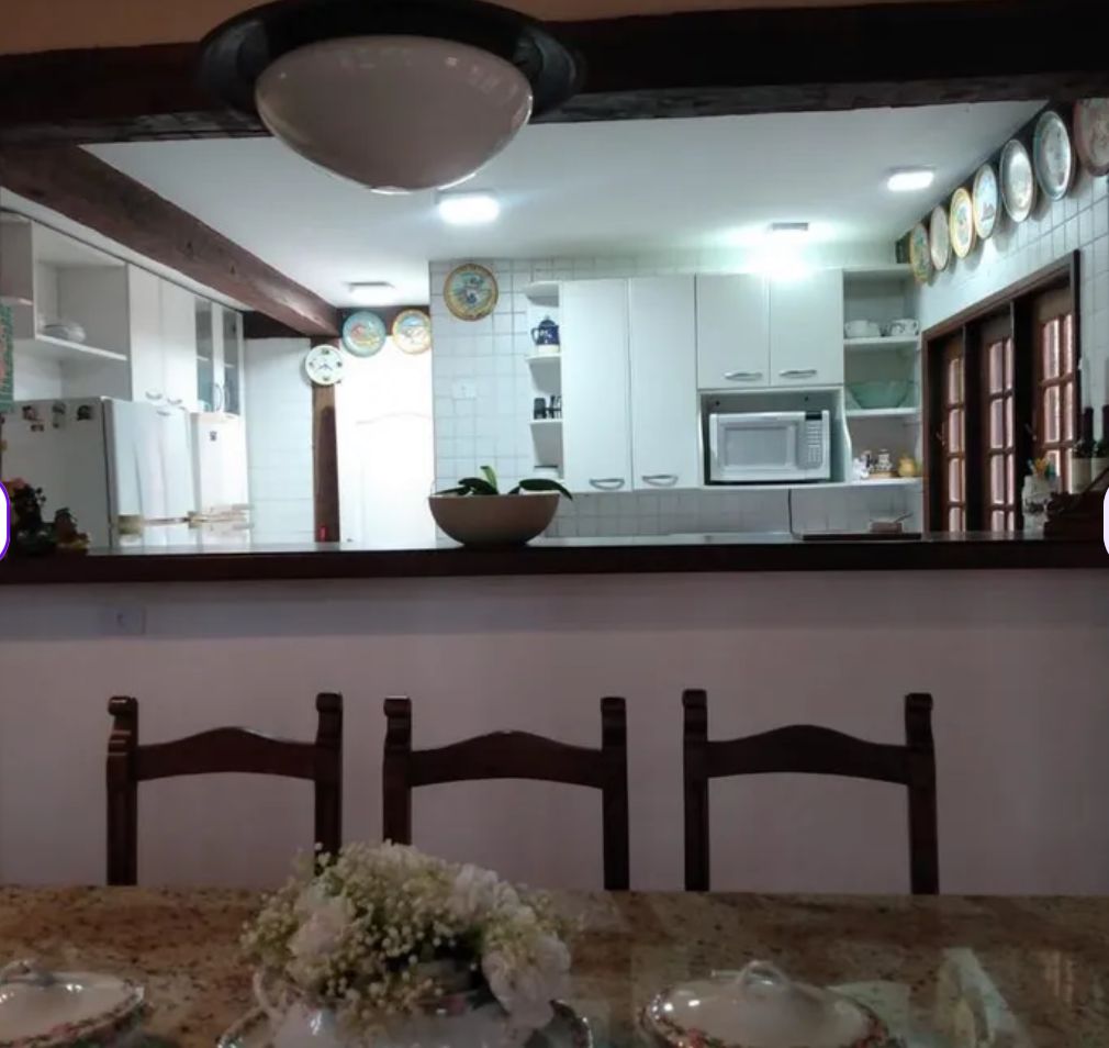 1º andar: Ampla sala com lareira em três ambientes, quarto, banheiro, cozinha completa e área de serviço.